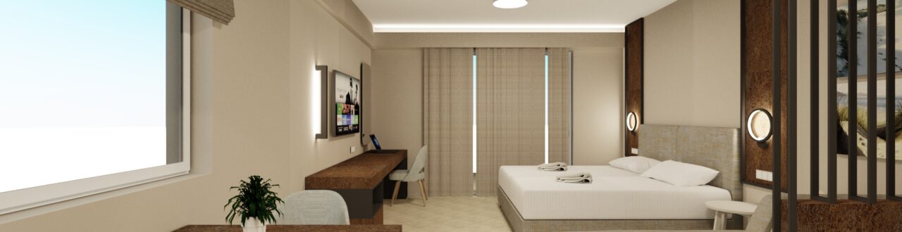 Стремясь обеспечить исключительный комфорт, номер категории «Executive» с боковым видом на море в отеле Colonides воплощает сдержанную элегантность.